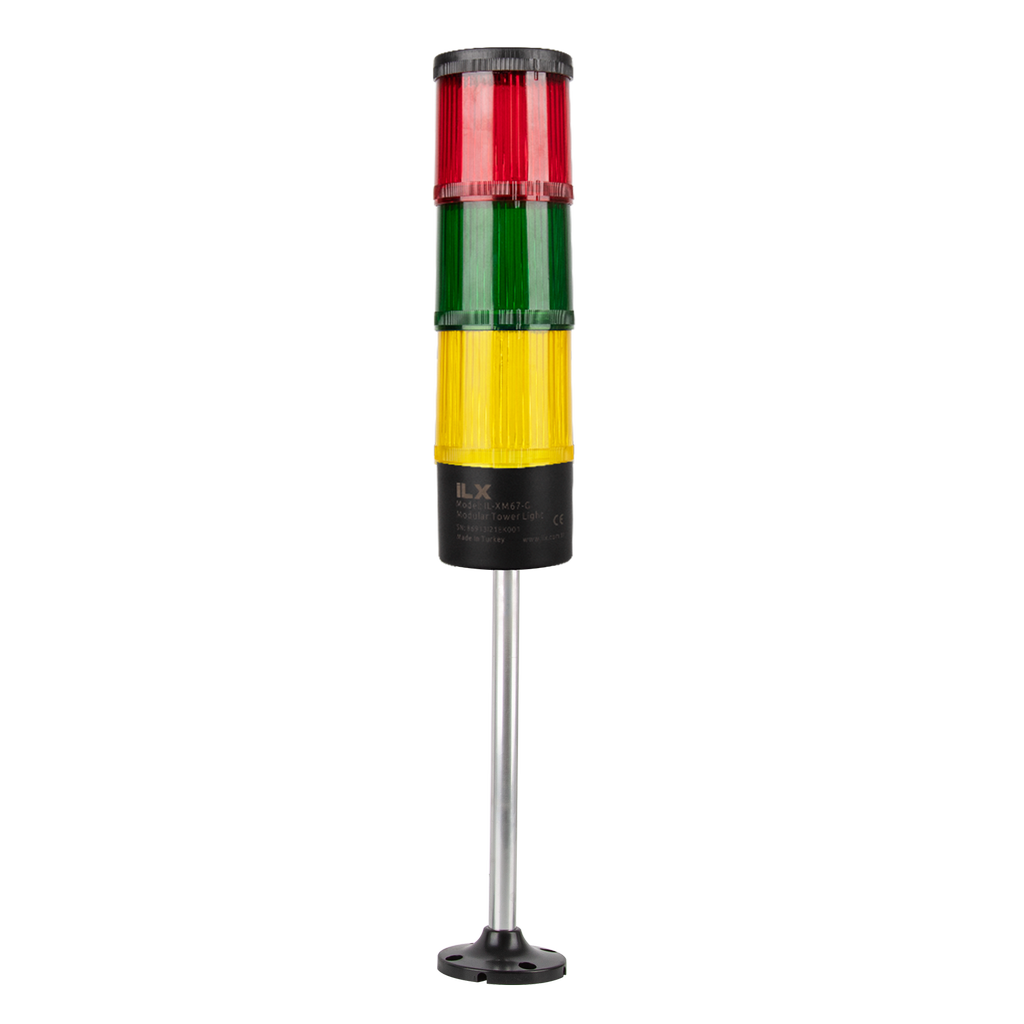 İLX – Ø70 M7 Serisi KT Taban Montajlı Işıklı Kolon – İkaz Lambası – 3 Katlı